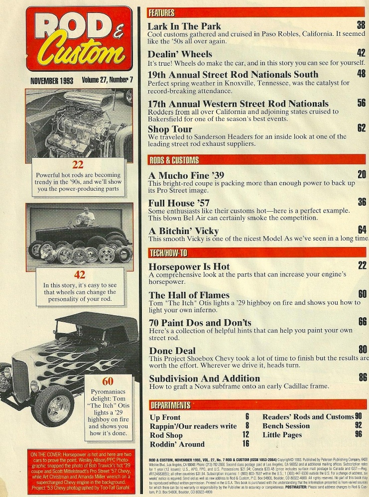 ROD & CUSTOM 1993 NOV -There is no description for this magazine yet. See picture of cover and contents below for details. ![]() ![]()