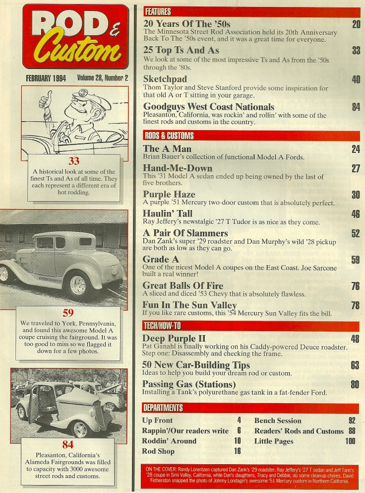ROD & CUSTOM 1994 FEB -There is no description for this magazine yet. See picture of cover and contents below for details. ![]() ![]()