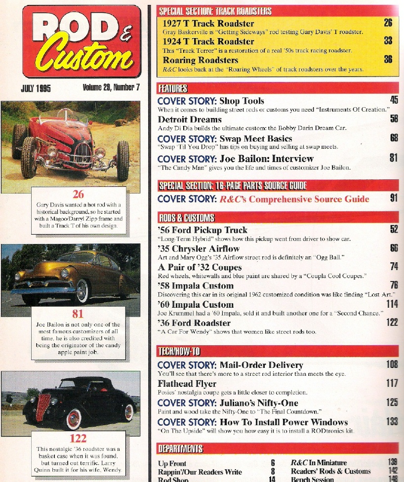 Reviews ROD & CUSTOM 1995 JULY - TRACK ROADSTERS, ANDY Di Dia/BOBBY DARIN DREAM CAR