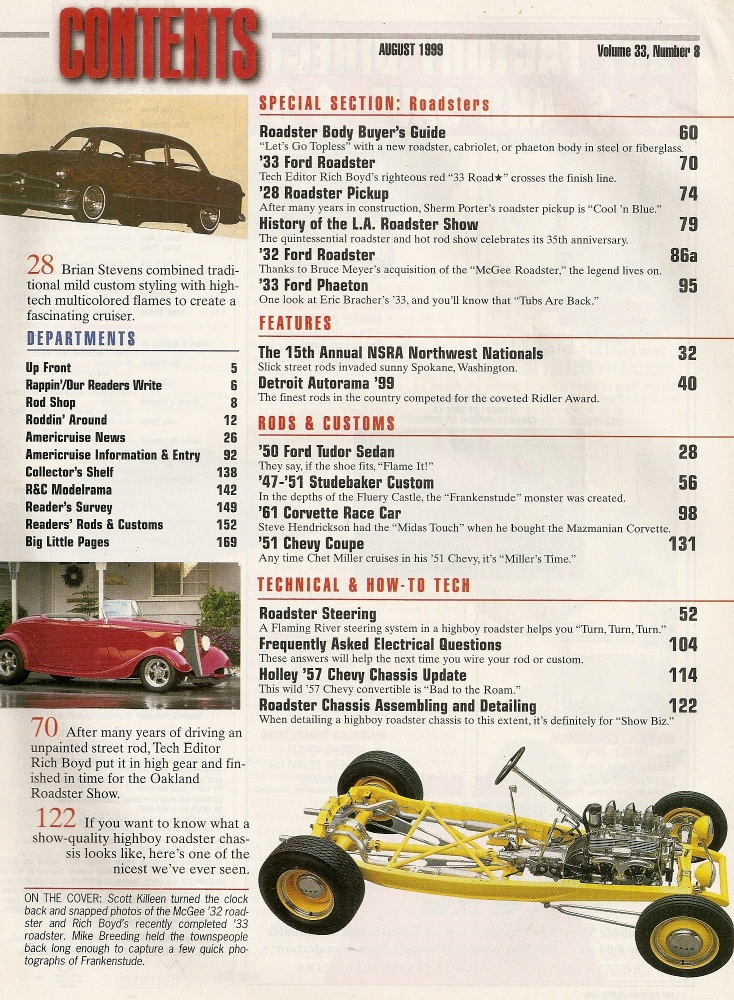 Reviews ROD & CUSTOM 1999 AUG - FLAMING RIVER STEERING 4 HI-BOY, 57 CHEVY FRAME MODS