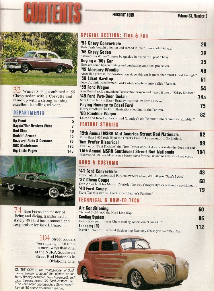 Reviews ROD & CUSTOM 1999 FEB - AC 4 A 56 F-100, COOLING A TRI-5 CHEVY, BUDGET IFS