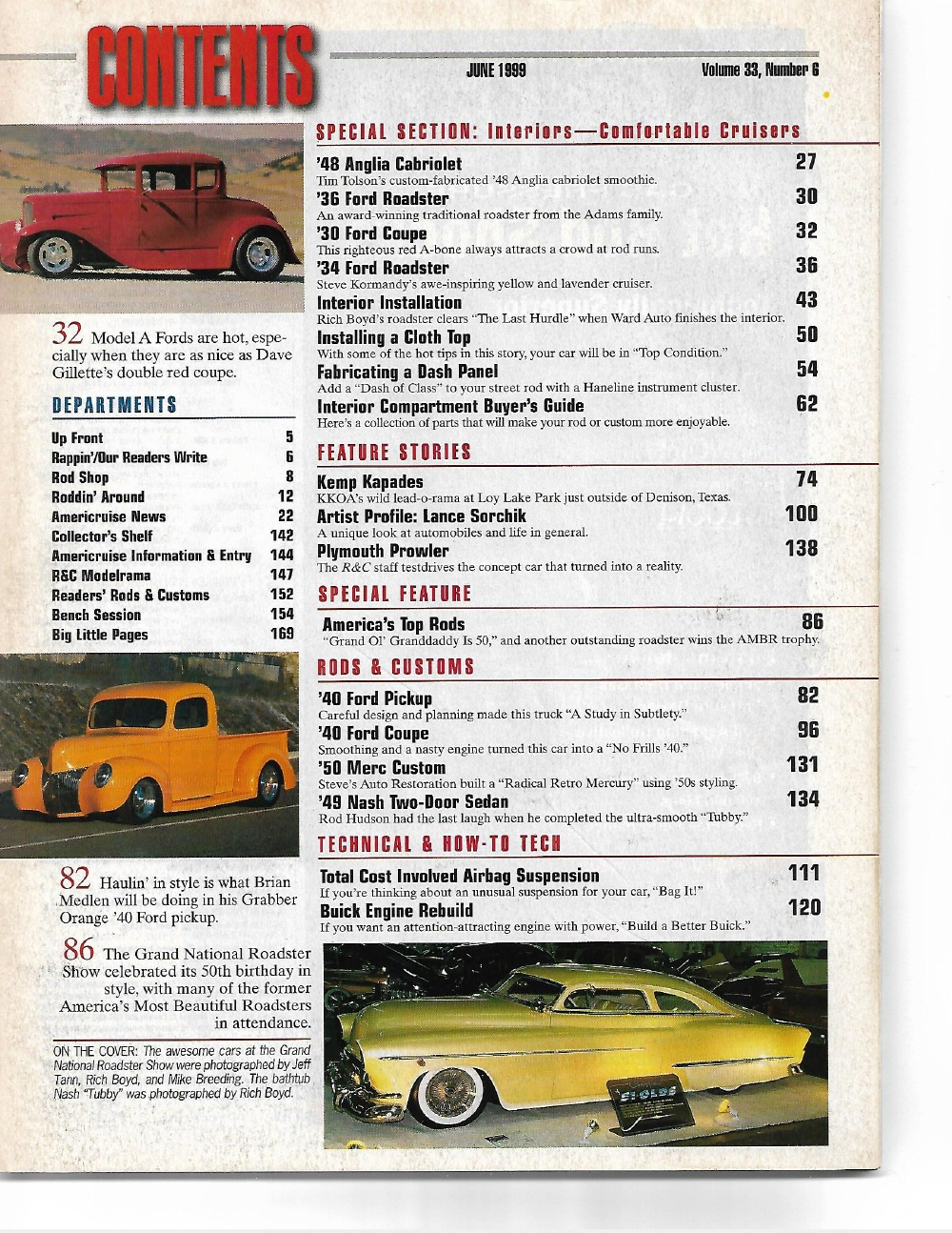Reviews ROD & CUSTOM 1999 JUNE - INTERIOR TIPS, NEW PROWLER, NAILHEAD REBUILD, SORCHIK*