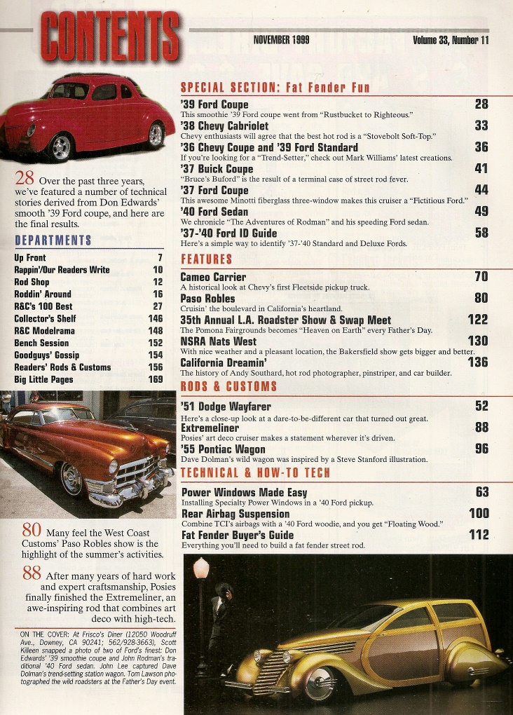 Reviews ROD & CUSTOM 1999 NOV - POWER WINDOWS 5 A 40 FORD, CAMEO CONCEPTS & HISTORY*