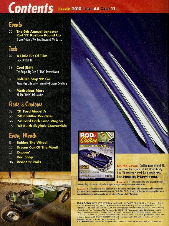 ROD & CUSTOM 2010 NOV -There is no description for this magazine yet. See picture of cover and contents below for details. ![]() ![]()