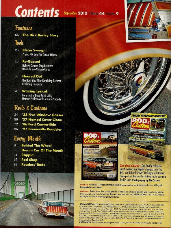 Reviews ROD & CUSTOM 2010 SEPT - DICK BURLEY, HOLLEY DOES VINTAGE CARB, NEW FLOORPAN