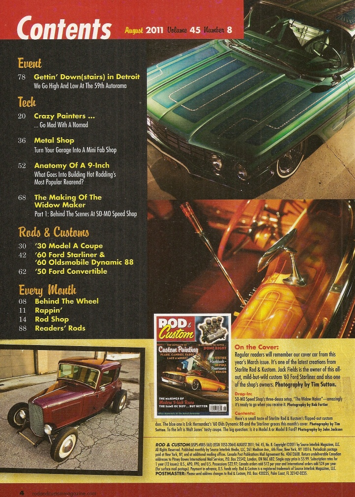 Reviews ROD & CUSTOM 2011 AUG - 9" REBUILT, 3X2 STROMBERG SET-UP, HOT WELDING BENCH