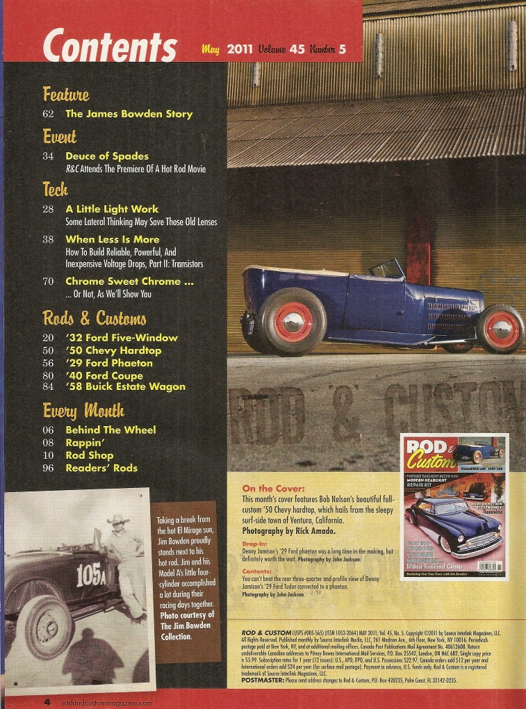 Reviews ROD & CUSTOM 2011 MAY - JAMES BOWDEN, PLASTIC LENSE RESTORED, GARNISH CHOP