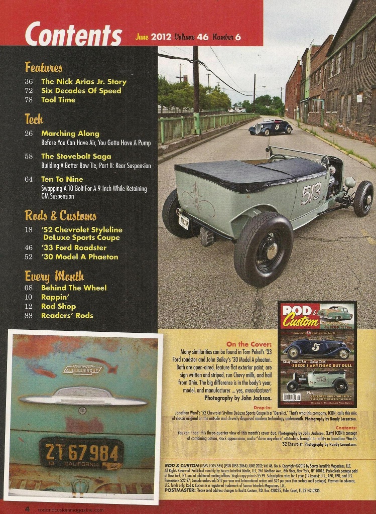 Reviews ROD & CUSTOM 2012 JUNE - EARLY CHEVY REAR LEAF UPGRADE, NICK ARIAS, SPEEDWAY