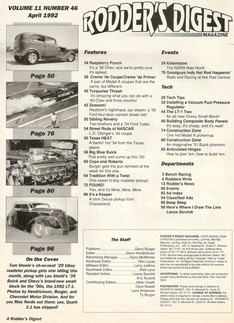 Reviews RODDER'S DIGEST 1992 APRIL - LT-1 INSTALL, COMPOSITE BODY PANEL MADE