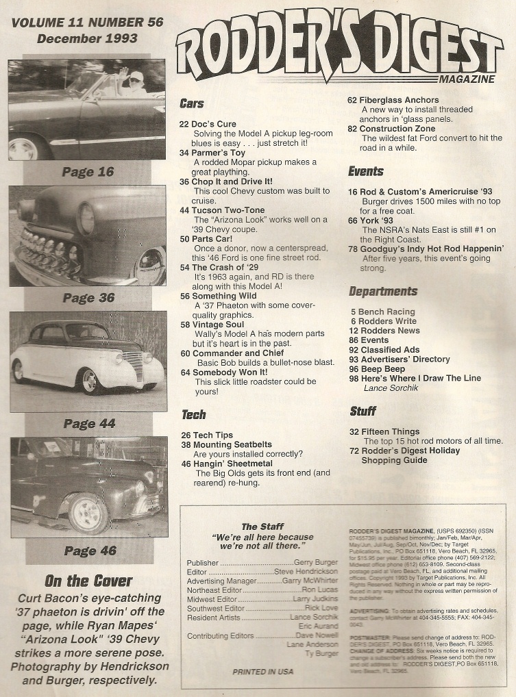 Reviews RODDER'S DIGEST 1993 DEC - THREATED ANCHORS IN FIBERGLASS, SEATS INSTALLED