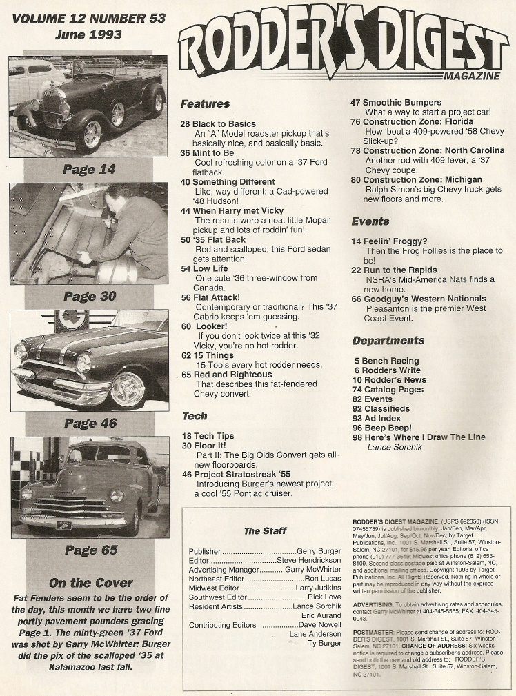 Reviews RODDER'S DIGEST 1993 OCT - CUSTOM ENGINE MOUNTS & BUDGET HOOD PROP MADE
