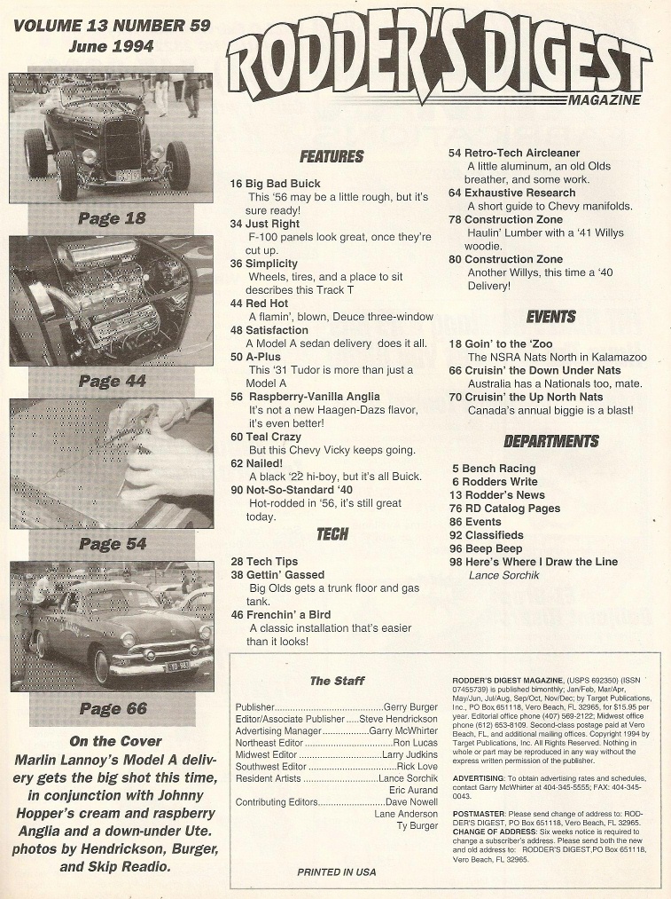 Reviews RODDER'S DIGEST 1994 JUNE - CUSTOM AIR CLEANER, FRENCH T-BIRD HEADLAMPS