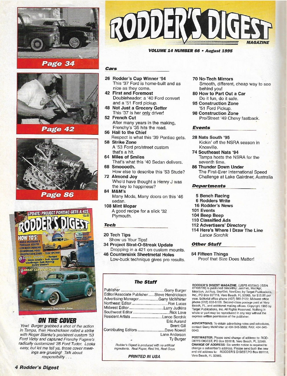 Reviews RODDER'S DIGEST 1995 AUG - '37 FORD WINNER, FRENCHY'S '35, '53 PRO STREET
