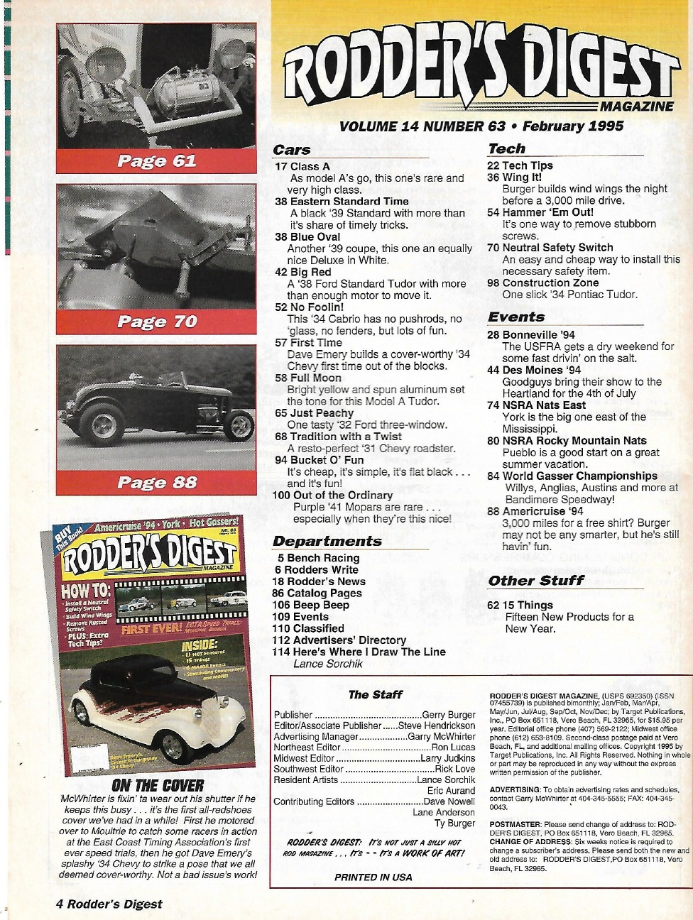 Reviews RODDER'S DIGEST 1995 FEB - BUILD WINGS, '34 CREME D'BURGUNDY, ECTA SPEED TRIALS