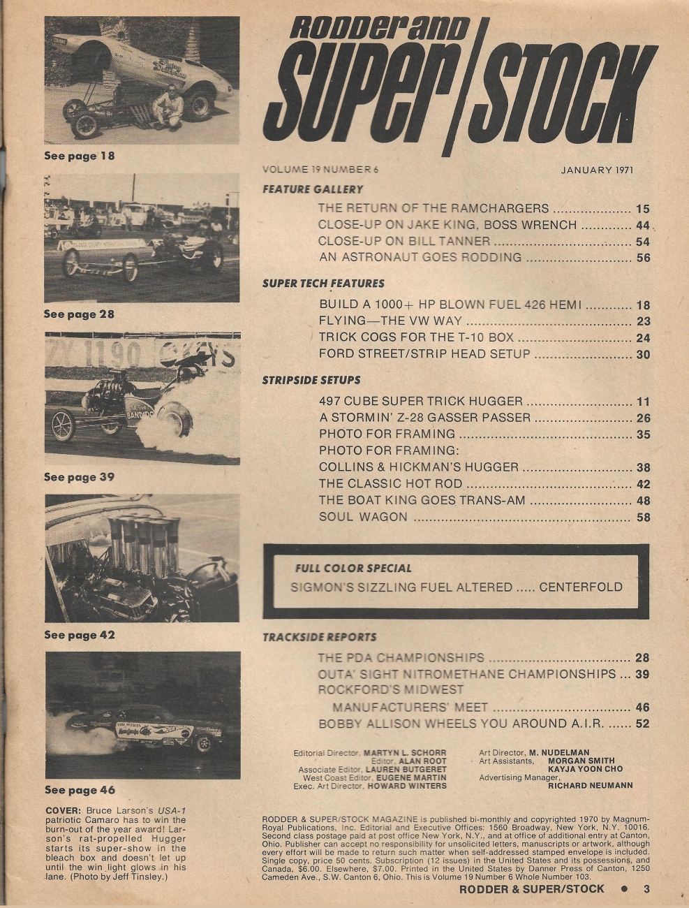 Reviews RODDER & SUPER/STOCK 1971 JAN - 497" CAMARO, FORD HEAD SET-UP, BUILD A 426 HEMI*