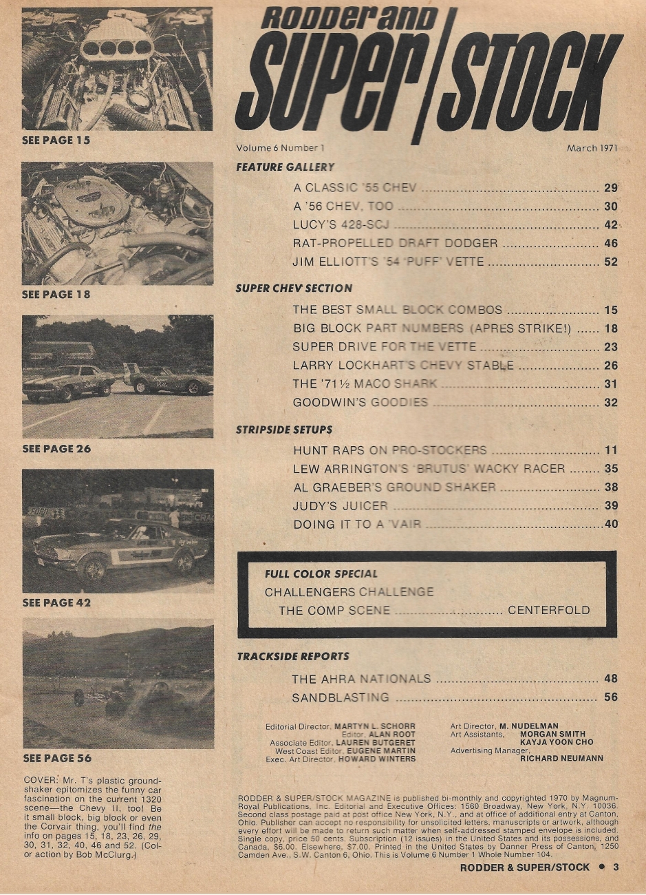 Reviews RODDER & SUPER/STOCK 1971 MAR - 396-454 SUPER CHEVY, VETTE OD TO '71 1/2 MACO*