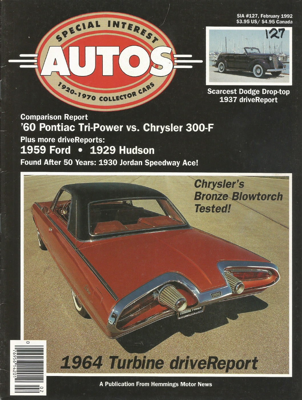 Reviews SPECIAL-INTEREST AUTOS 1992 FEB #127 - TURBINE CAR, 389 TRI-POWER vs. 300F