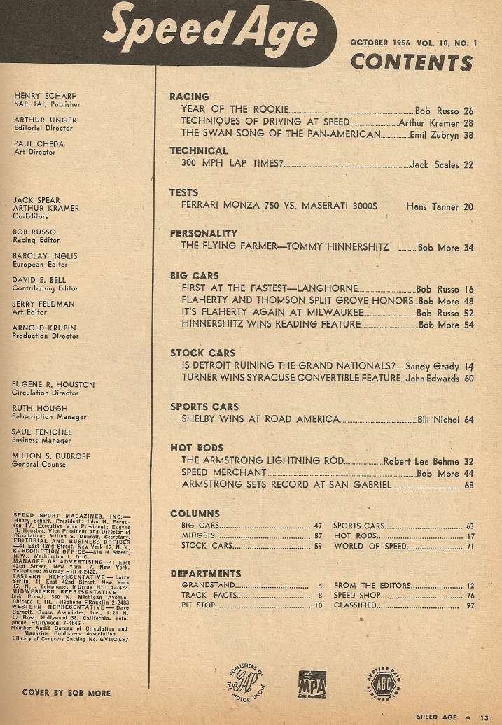 Reviews SPEED AGE 1956 OCT - MASERATI 3000S/FERRARI MONZA 750 TESTS, FLAHAERTY, SHELBY