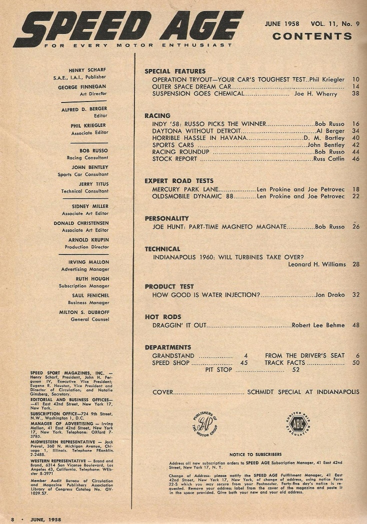 Reviews SPEED AGE 1958 JUNE - OLDSMOBILE V MERCURY, OLDSMOBILE DYNAMIC 88, JOE HUNT*