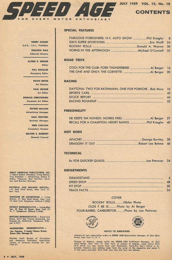 Reviews SPEED AGE 1959 JULY - THUNDERBIRD, CORVETTE, FLYING LADY-RR, OLDS F 88 III