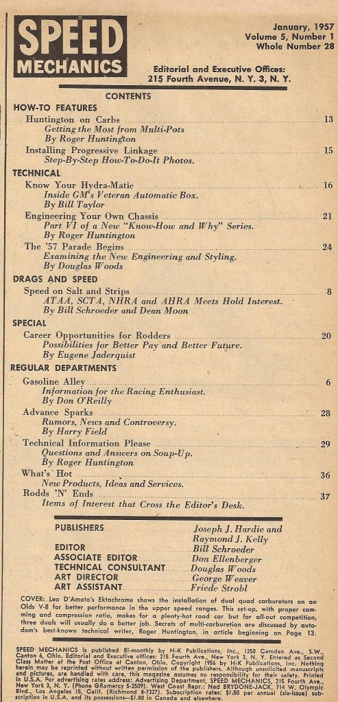 Reviews SPEED MECHANICS 1957 JAN - ALL ABOUT CARBS, HYDROMATIC, SALT SPEED, NEW '57s*