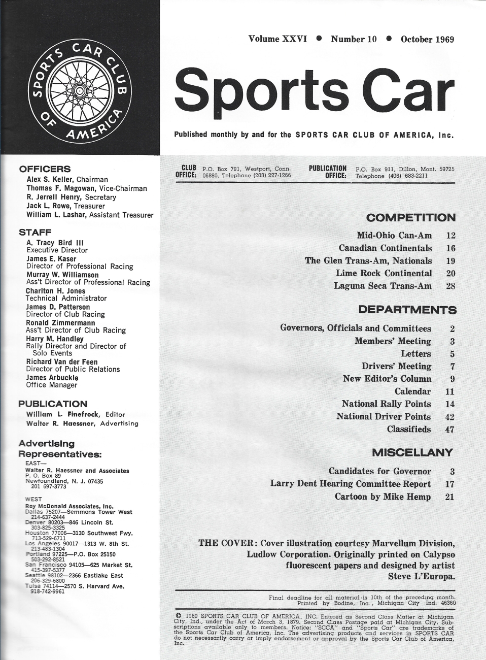 SPORTS CAR 1969 OCT - GLEN TRANS-AM, NATS, LIME ROCK, LAGUNA SECA T/A