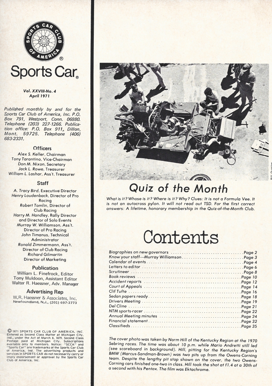 This magazine is the "Official Publication of the Sports Car Club of America"