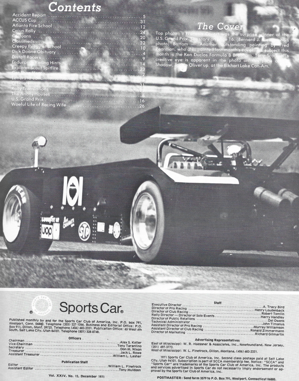 Reviews SPORTS CAR 1971 DEC - DICK DOANE, SANDY MCDONOUGH, US GRAND PRIX, CAR-TOONS