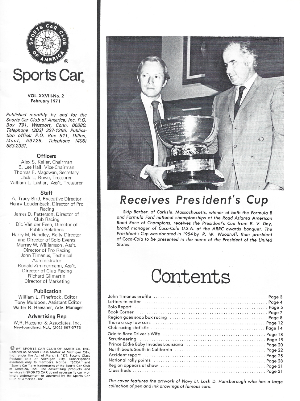 Reviews SPORTS CAR 1971 FEB - SKIP BARBER, JOHN TIMANUS, PRINCE EDDIE BABY