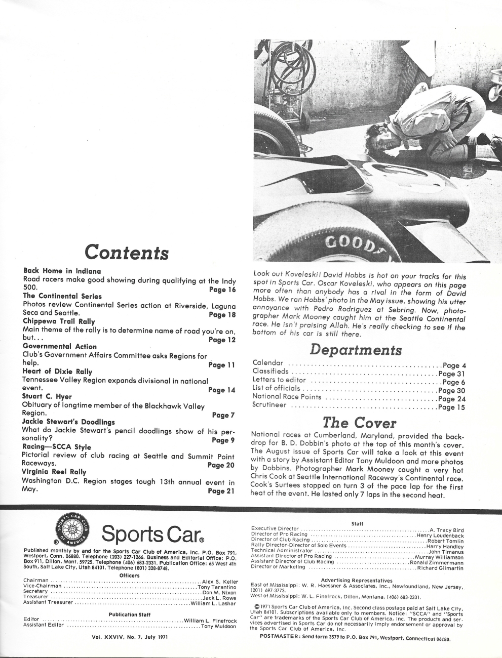 Reviews SPORTS CAR 1971 JULY - CONTINENTAL SERIES,HEART OF DIXIE RALLY,STEWARTS DOODLES
