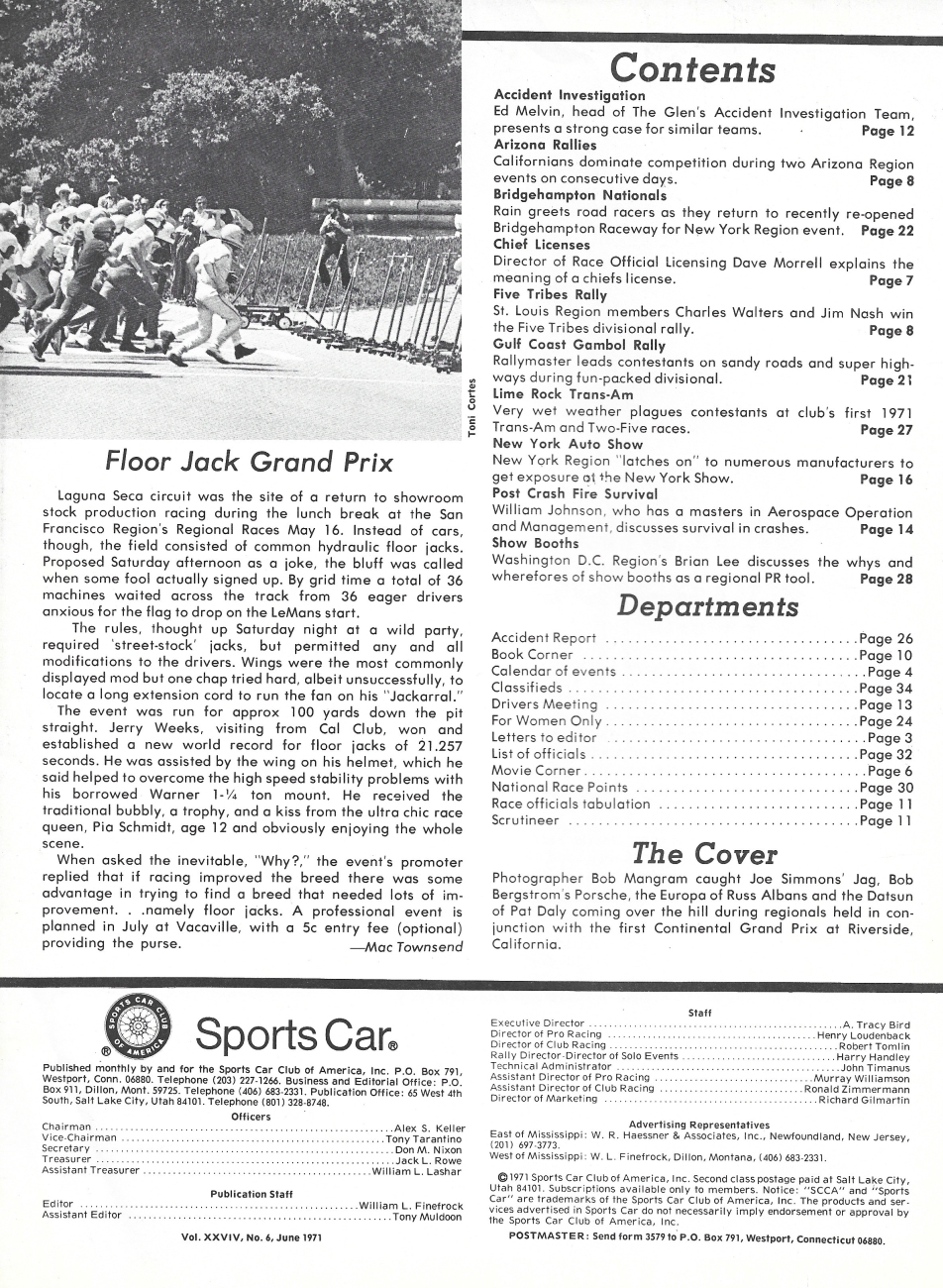 Reviews SPORTS CAR 1971 JUNE - FLOOR JACK GRAND PRIX, ARIZONA RALLIES,FIVE TRIBES RALLY