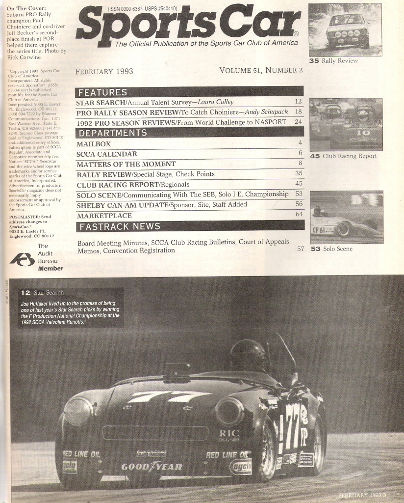 SPORTS CAR 1993 FEB -This magazine is the "Official Publication of the Sports Car Club of America"See Table of Contents below for description of this magazine.