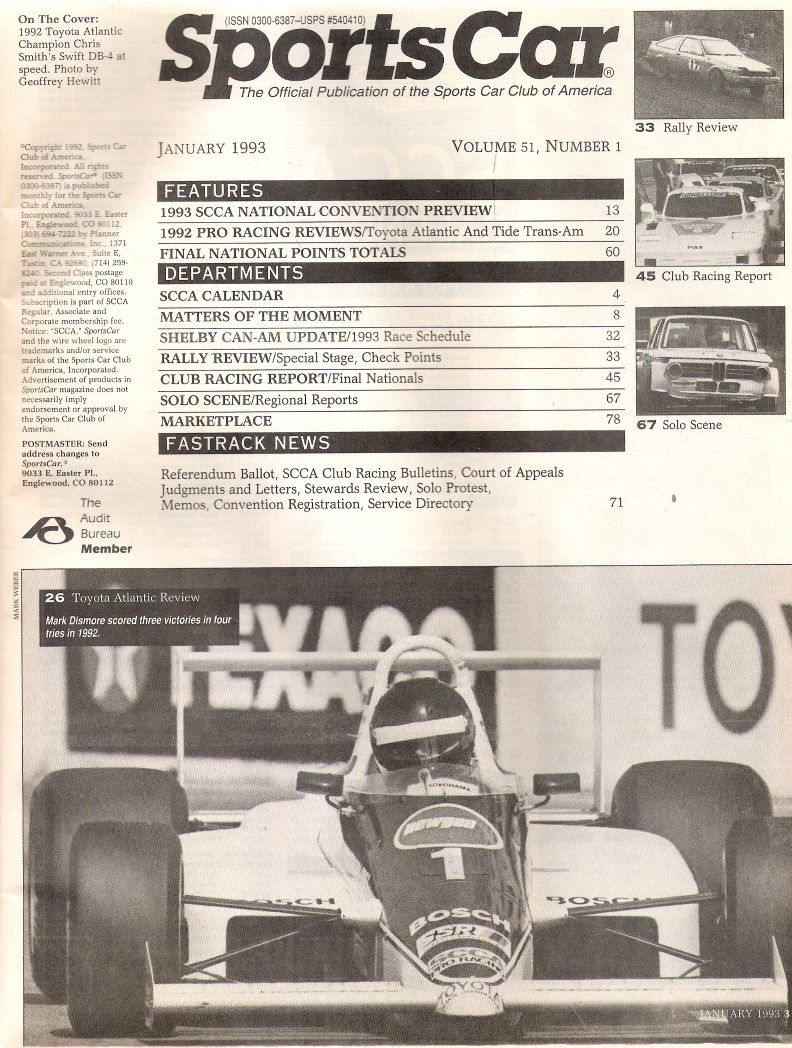 SPORTS CAR 1993 JAN -This magazine is the "Official Publication of the Sports Car Club of America"See Table of Contents below for description of this magazine.