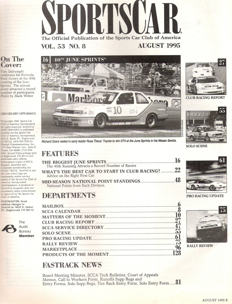 SPORTS CAR 1995 AUG -This magazine is the "Official Publication of the Sports Car Club of America"See Table of Contents below for description of this magazine.