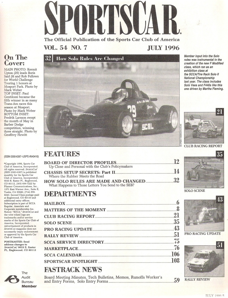 Reviews SPORTS CAR 1996 JULY - CHASSIS SECRETS PT 2, SOLO RULES, BOD PROFILES