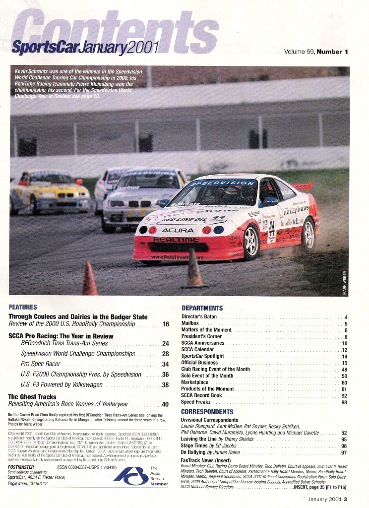 SPORTS CAR 2001 JAN -This magazine is the "Official Publication of the Sports Car Club of America"See Table of Contents below for description of this magazine.