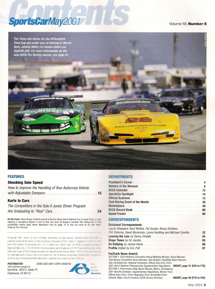 SPORTS CAR 2001 MAY -This magazine is the "Official Publication of the Sports Car Club of America"See Table of Contents below for description of this magazine.