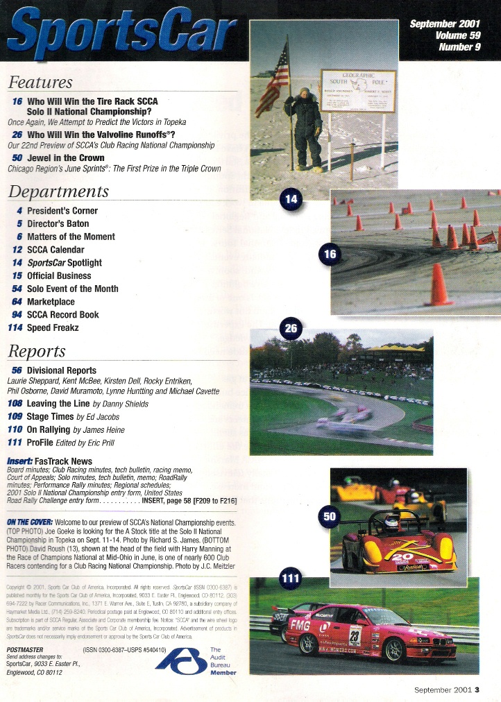 SPORTS CAR 2001 SEPT -This magazine is the "Official Publication of the Sports Car Club of America"See Table of Contents below for description of this magazine.