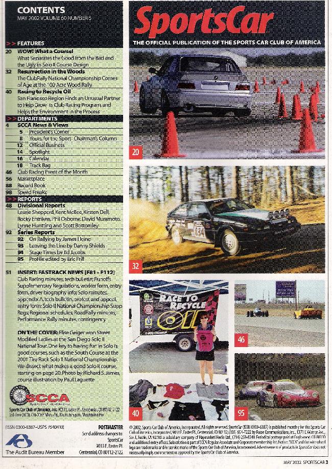Reviews SPORTS CAR 2002 MAY - GREAT SOLO COURSES, PAN AM REGION RACING, BACH ALLEGRO