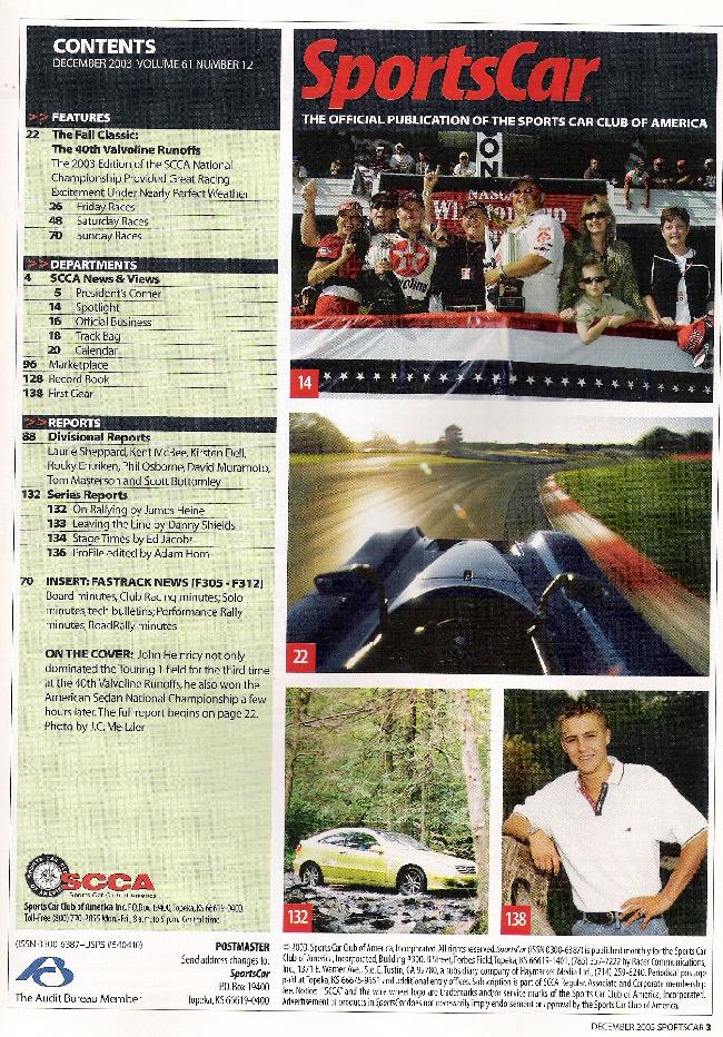 SPORTS CAR 2003 DEC -This magazine is the "Official Publication of the Sports Car Club of America"See Table of Contents below for description of this magazine.
