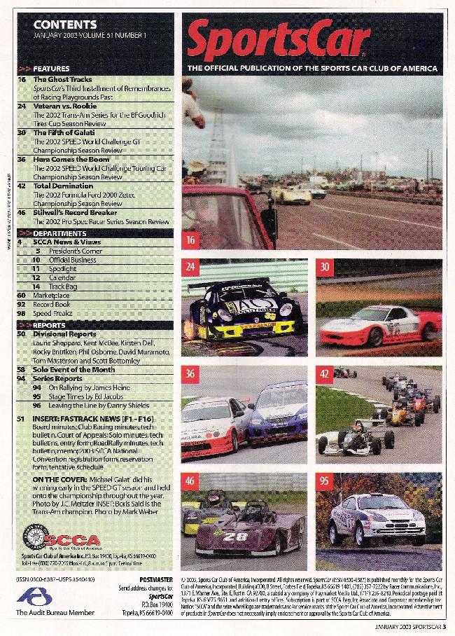 SPORTS CAR 2003 JAN -This magazine is the "Official Publication of the Sports Car Club of America"See Table of Contents below for description of this magazine.