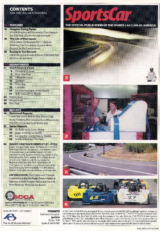 Reviews SPORTS CAR 2003 JUNE - CLADIO BURTIN, HILLCLIMBING, SUMMIT POINT, SAFETY