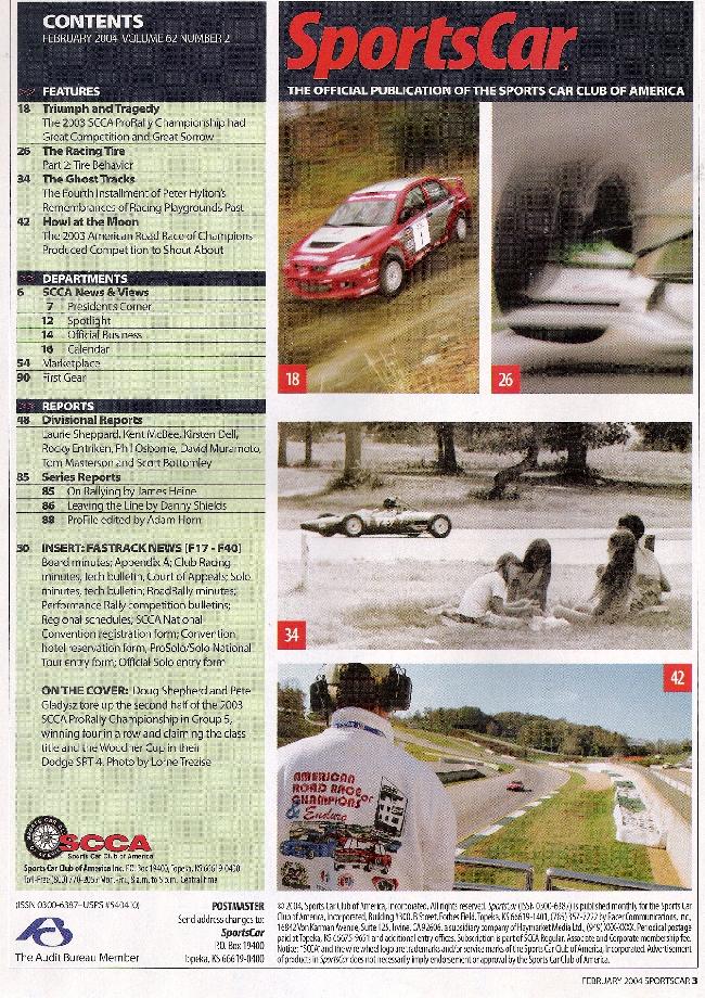 SPORTS CAR 2004 FEB -This magazine is the "Official Publication of the Sports Car Club of America"See Table of Contents below for description of this magazine.