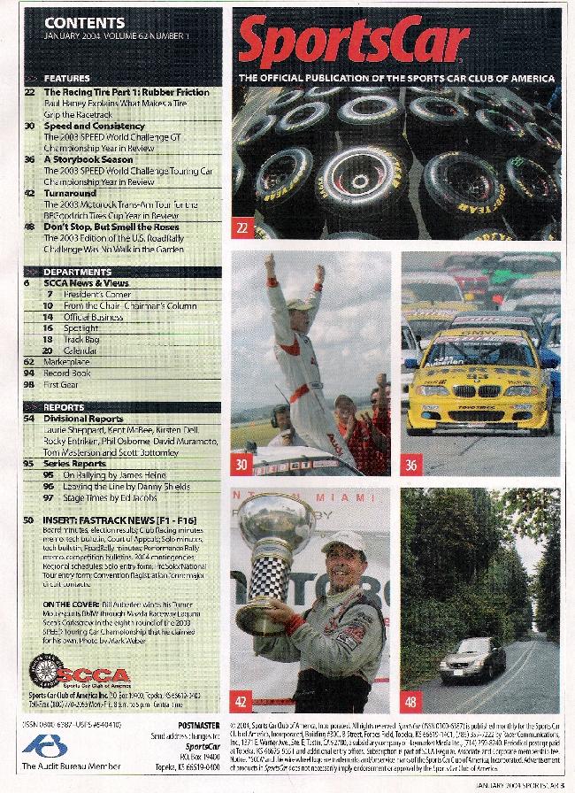Reviews SPORTS CAR 2004 JAN - RACING TIRES, CHRISTINE BERRY, RACING GEAR