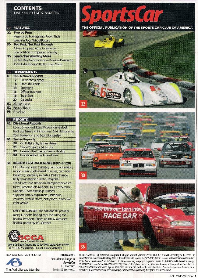 SPORTS CAR 2004 JUNE -This magazine is the "Official Publication of the Sports Car Club of America"See Table of Contents below for description of this magazine.