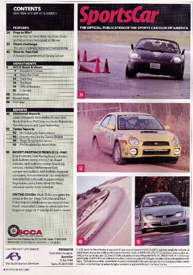 Reviews SPORTS CAR 2004 MAY - RACING SCHOOL, OZARK CHALLENGE, NEW RACING GEAR