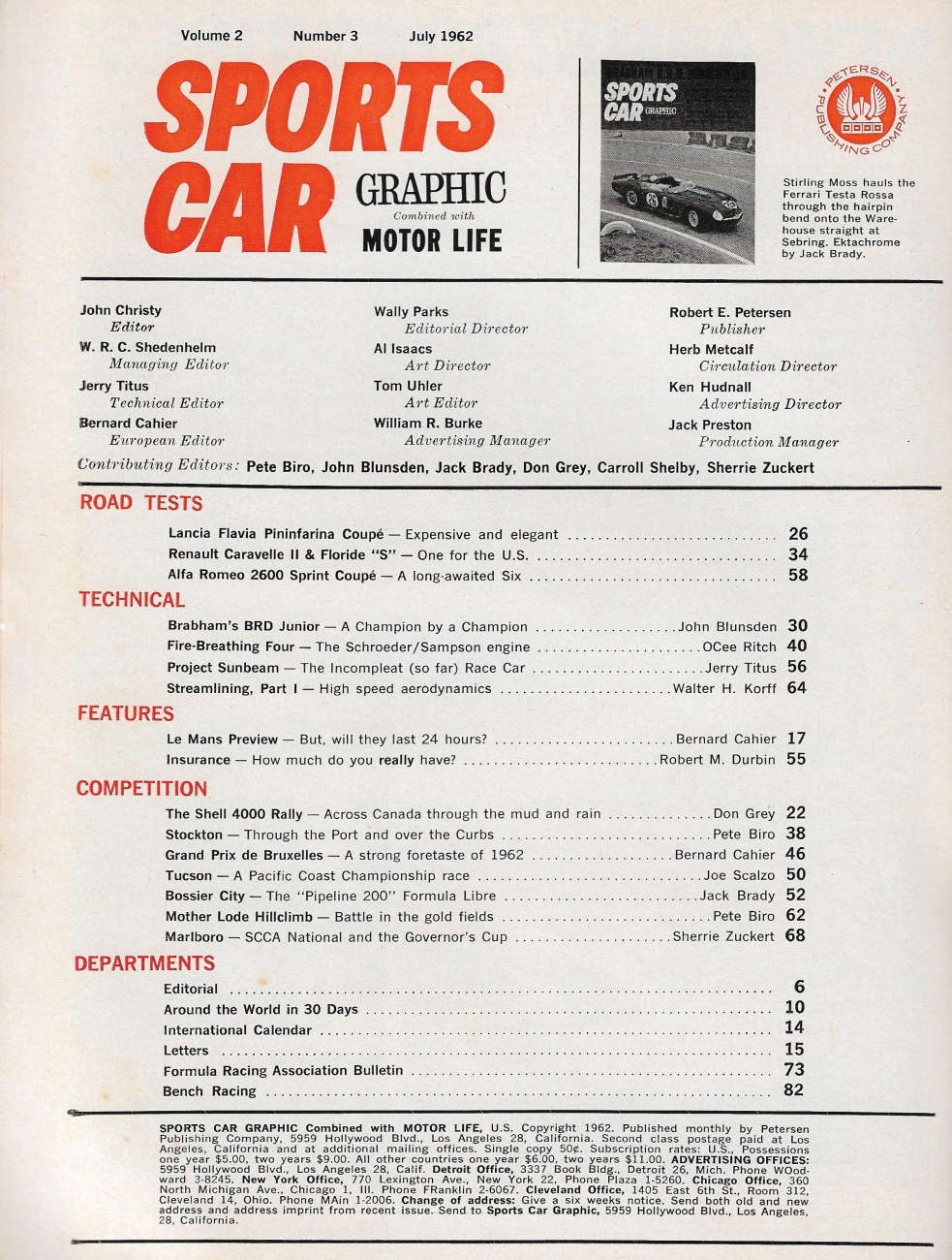 SPORTS CAR GRAPHIC 1962 JULY - CARAVELLE, FLAVIA, ALFA 2600 SPRINT*