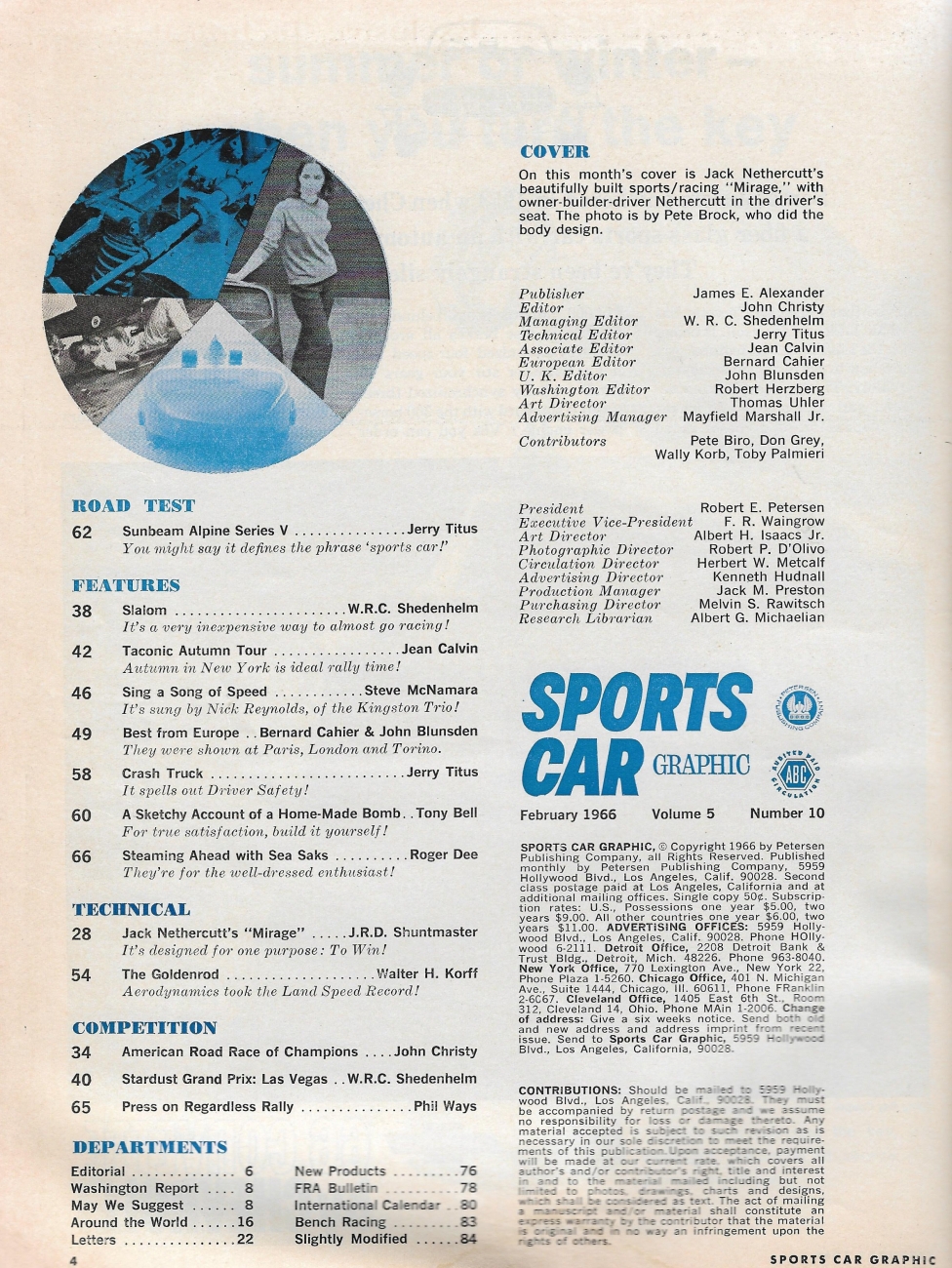 Reviews SPORTS CAR GRAPHIC 1966 FEB - ALPINE V, NETHERCUTTs MIRAGE, ARRC*