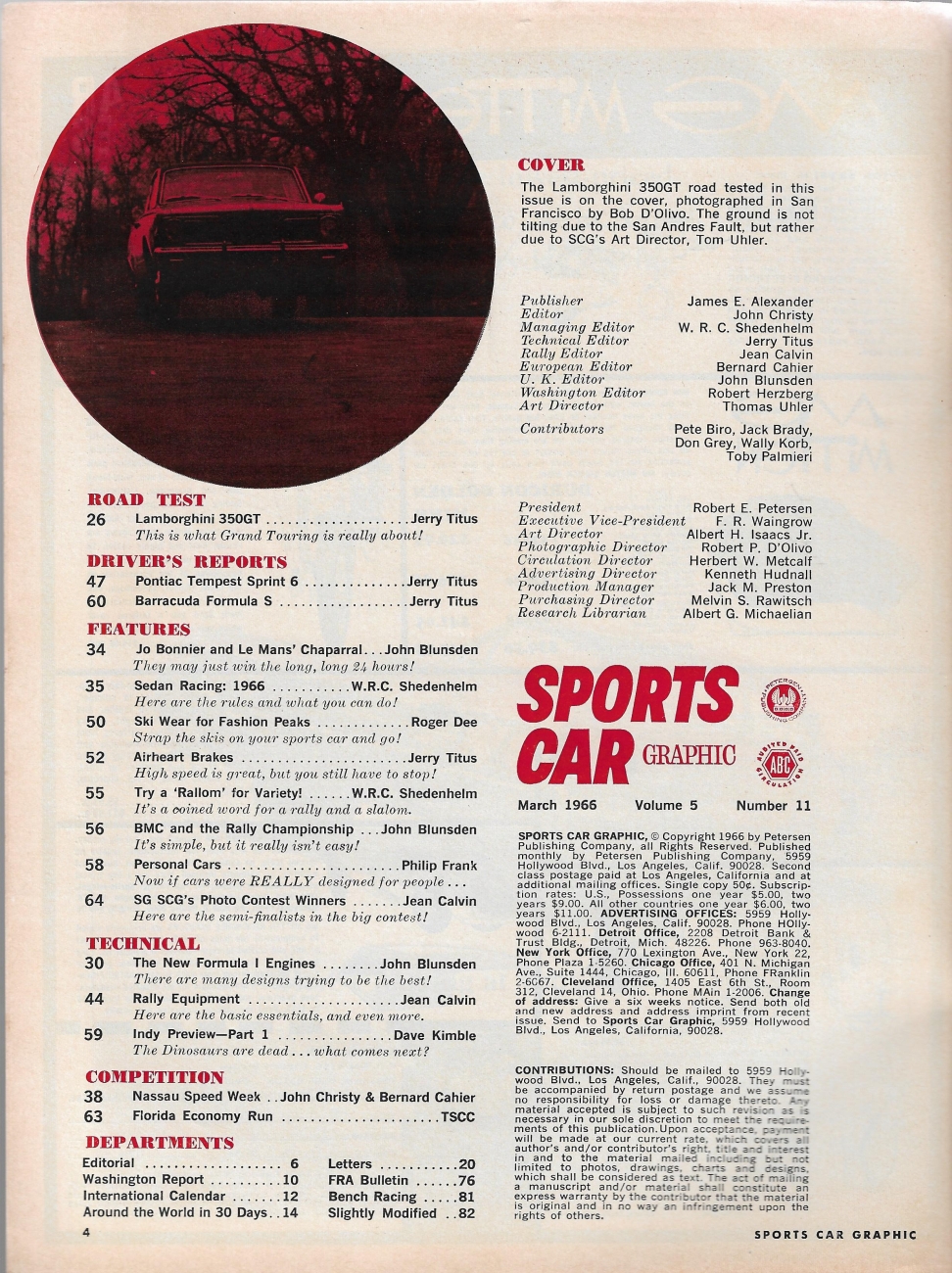SPORTS CAR GRAPHIC 1966 MAR - LAMBO 350GTTEMPEST SPRINT, CUDA S
