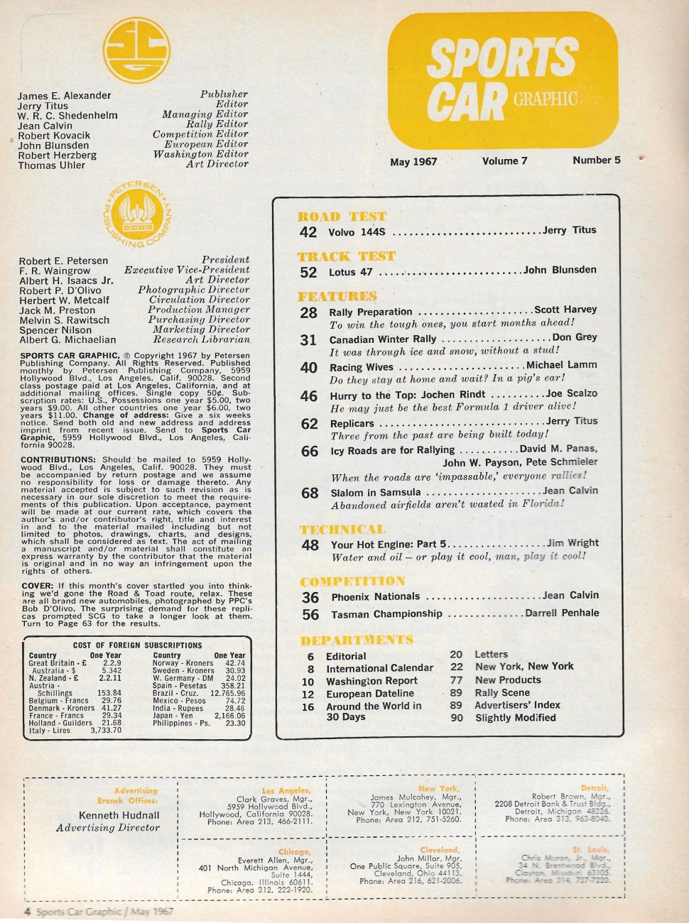 Reviews SPORTS CAR GRAPHIC 1967 MAY - VOLVO 144, LOTUS 47, REPLICARS